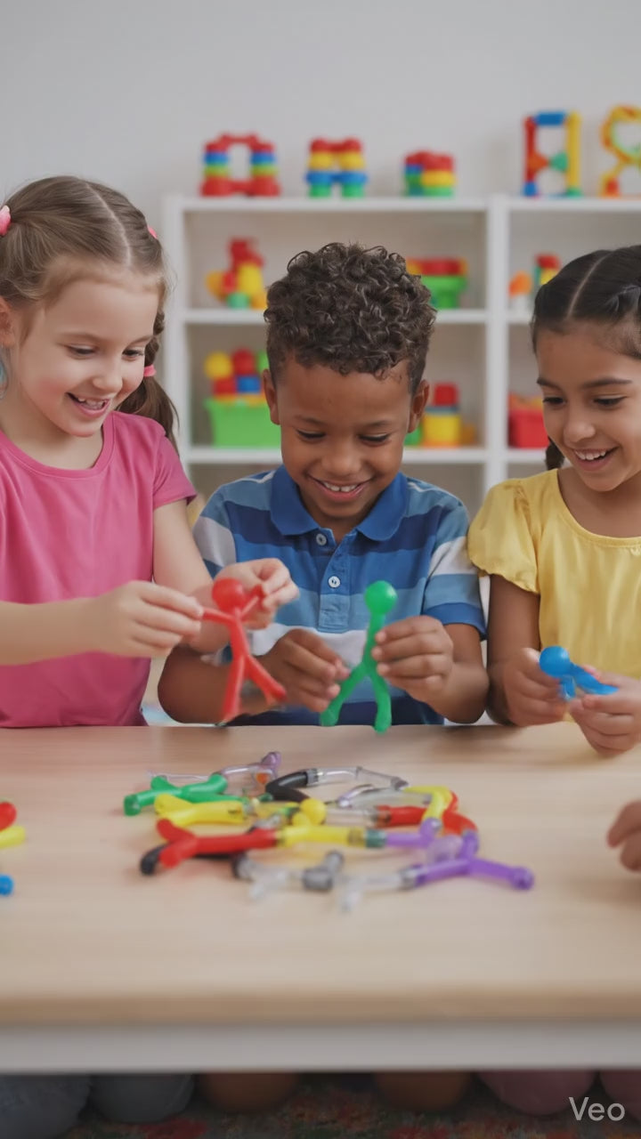 Leur structure flexible, avec des aimants intégrés dans les bras et les jambes, permet de plier, connecter et inventer sans limites, sans se déformer ni perdre leurs couleurs.